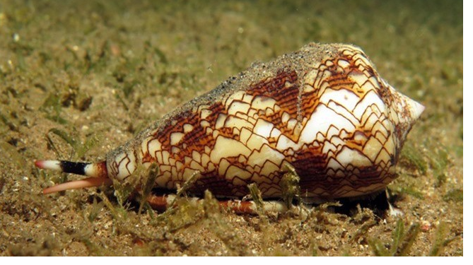 Ảnh: ốc nón địa lý có chất cực độc nếu chẳng may ta chạm trực tiếp vào chúng.
